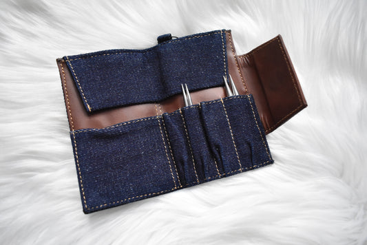 Lykke Knitting Needles Case | Magnetic Flap | Small Vegan Leather and Denim Case