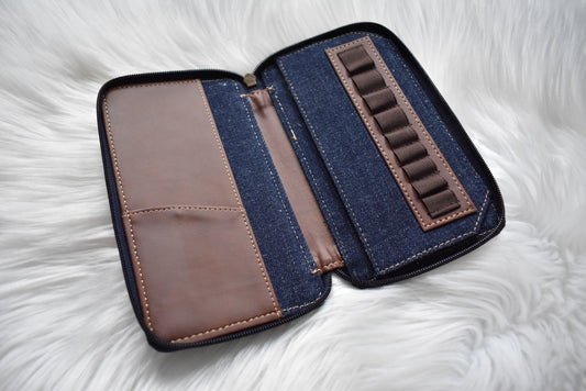 Lykke Knitting Needles Case | Oxford Zipper | Small Vegan Leather and Denim Case