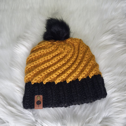Handmade Knit Wool Beanie | Swirlpool Beanie | Pittsburgh Yellow & Black