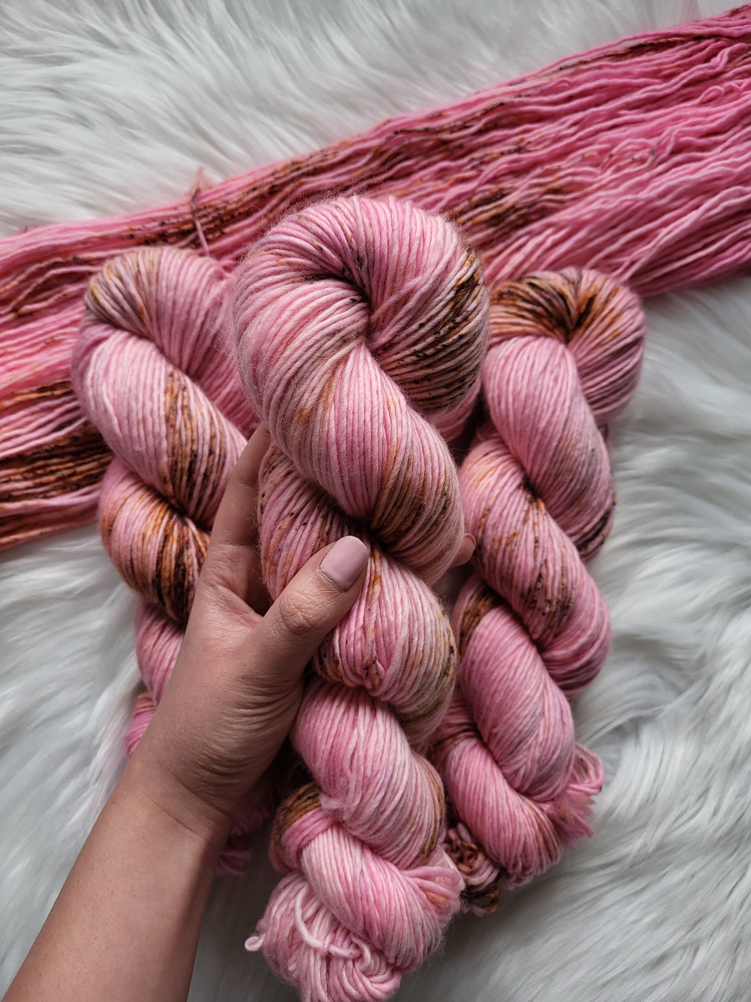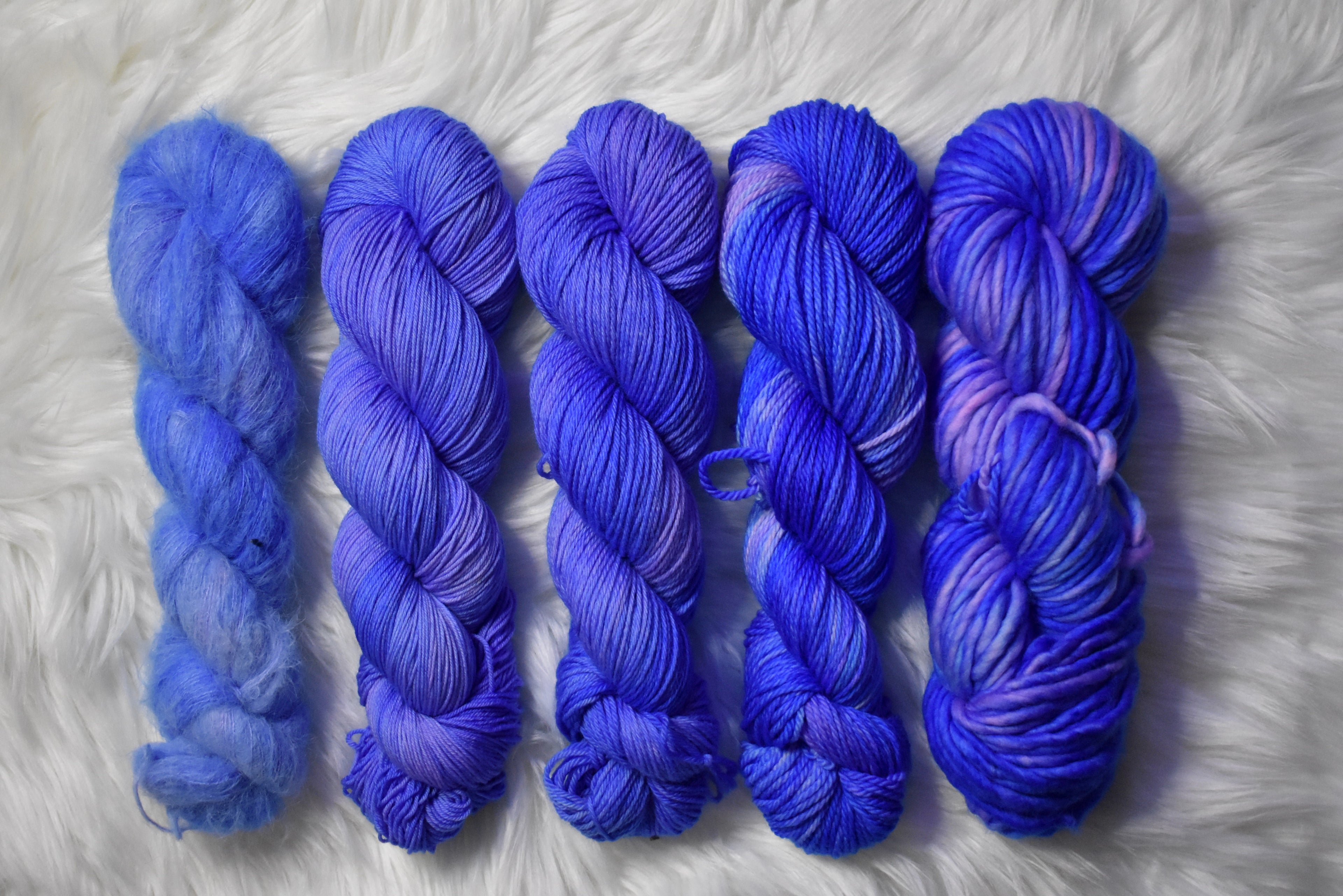 Our yarn is hand-dyed in batches of 5 or 10, as such, a minimum order is 5 skeins of the same color in a single weight. Wholesale pricing listed below is in batches of 10.