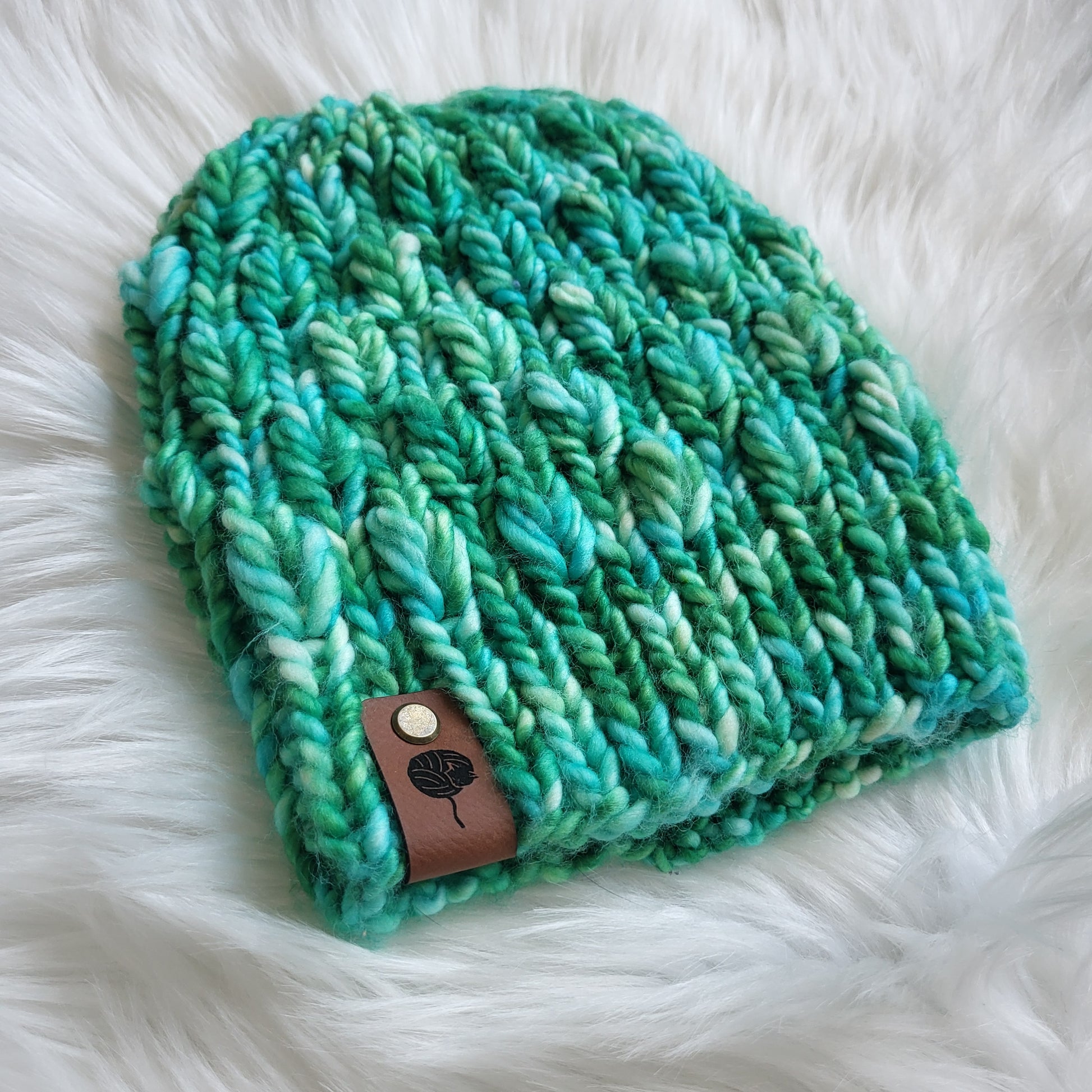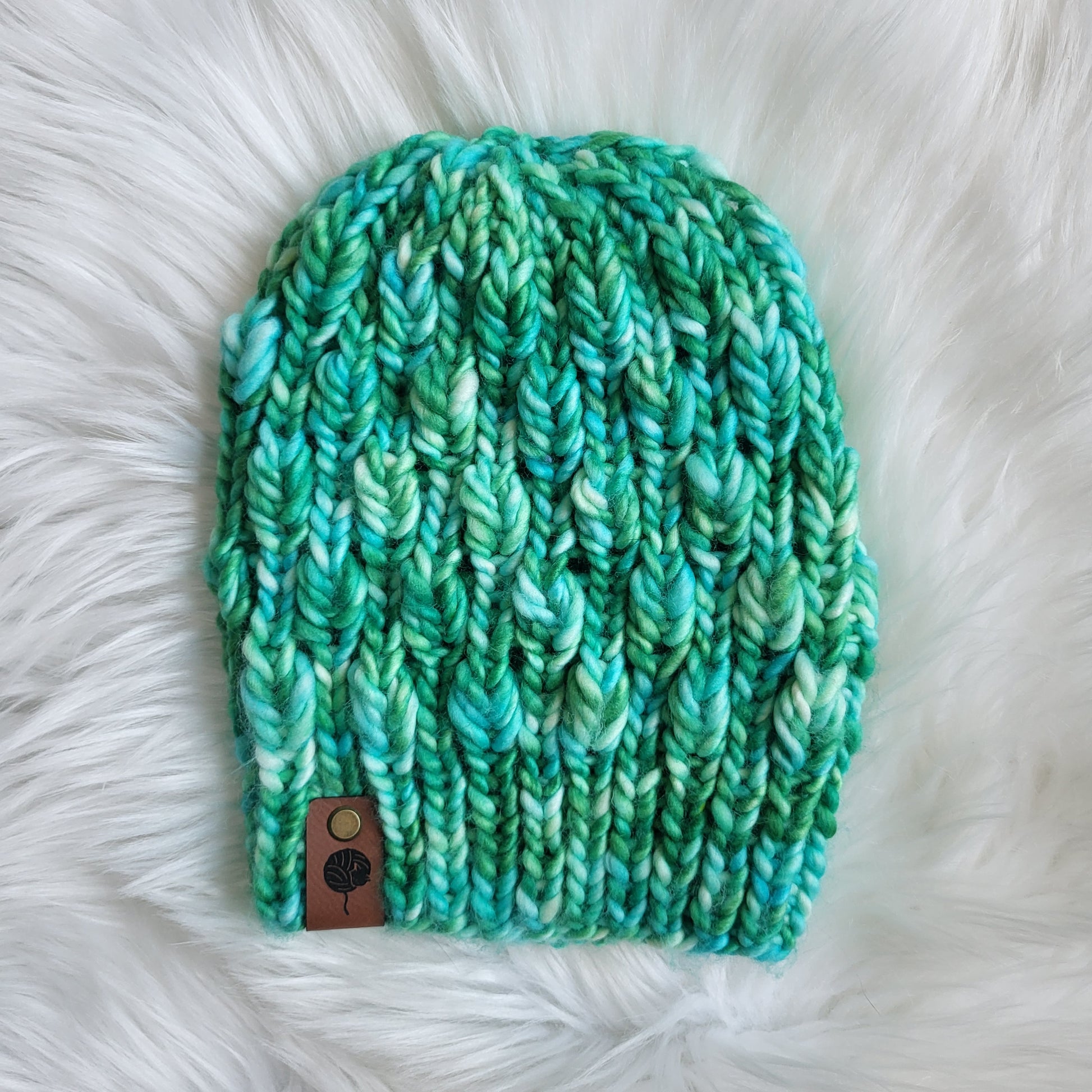 This chunky knit beanie is handmade in primarily Merino Wool yarn (Poolside by Château Victorie), soft to the touch, and perfect for the cold! This twisted beanie is super cute and comfy. The adult sizing is stretchy for your comfort. It is warm and extremely comfortable to wear throughout the cold weather. They do not come with a fold-over brim.