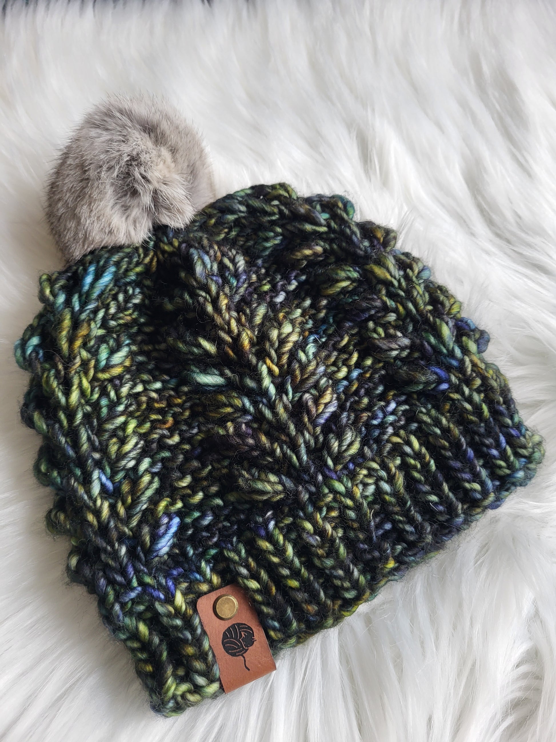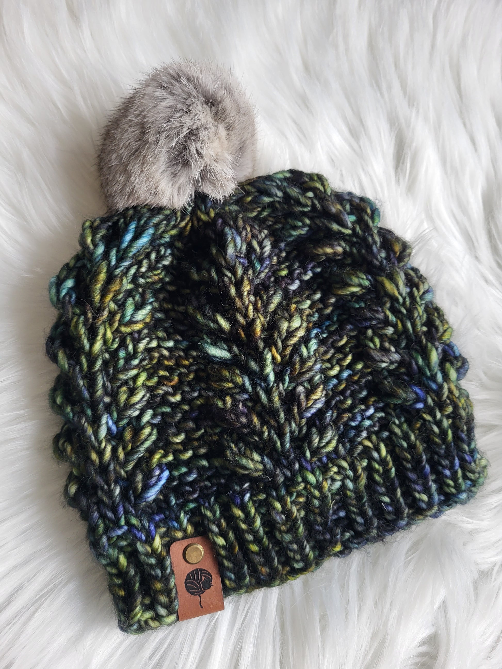 NEW: This beanie comes with a handmade repurposed rabbit fur pompom.