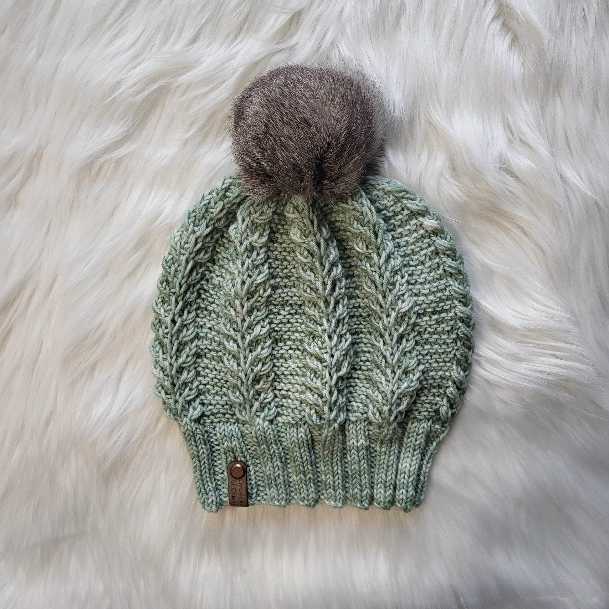 Handmade Knit Wool Beanie | Begin Again | Repurposed Rabbit PomPom