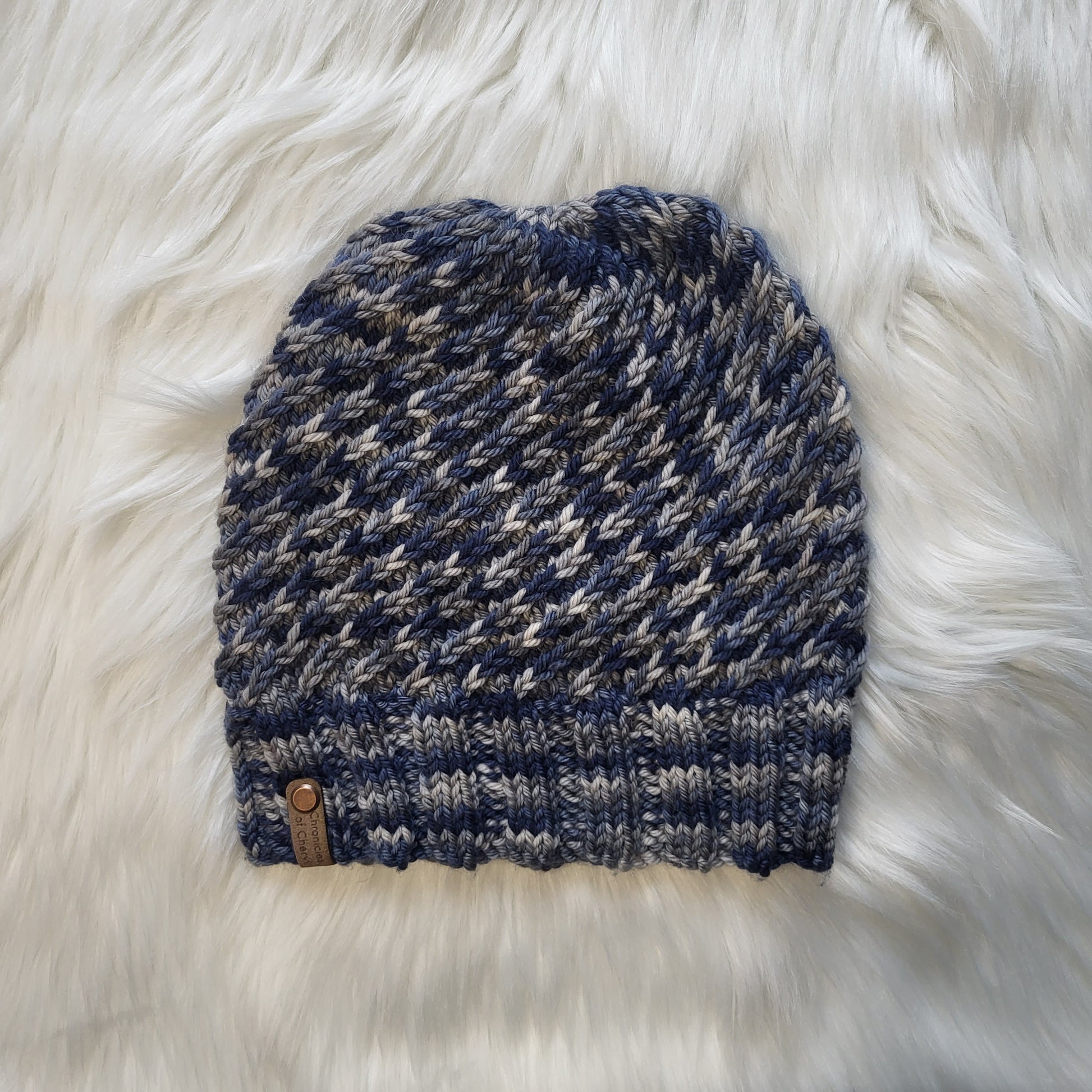 Handmade Knit Wool Beanie | Swirlpool | Denim Dreams