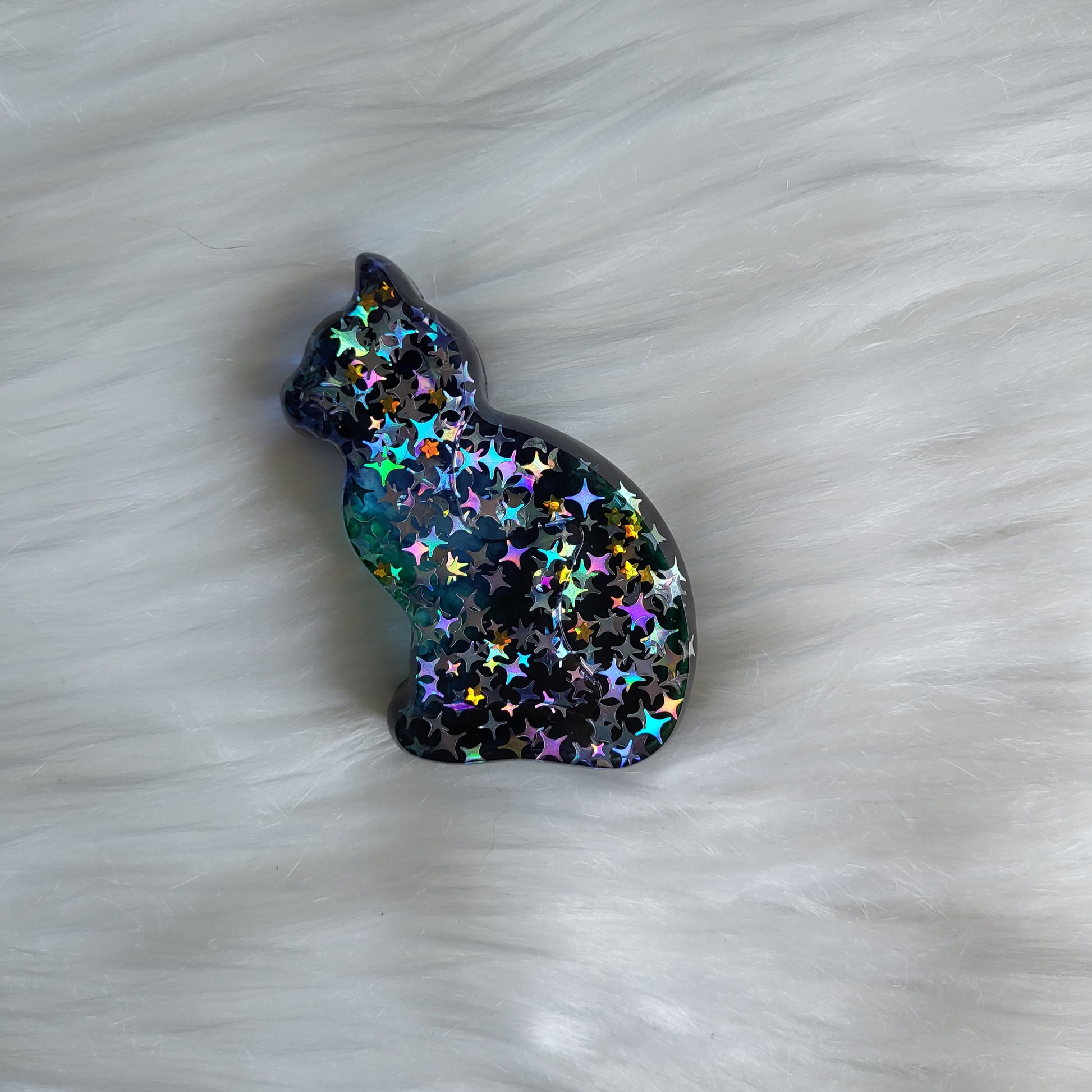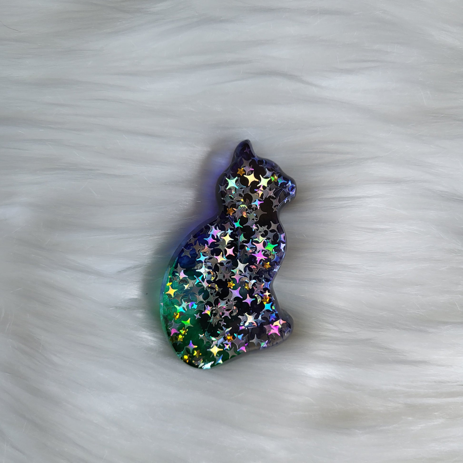 This cute cat-shaped magnet is handmade from resin and is about 3 inches tall. It has a smooth, shiny finish and sticks to any magnetic surface like a fridge or locker. Perfect for cat lovers or as a fun little decoration!