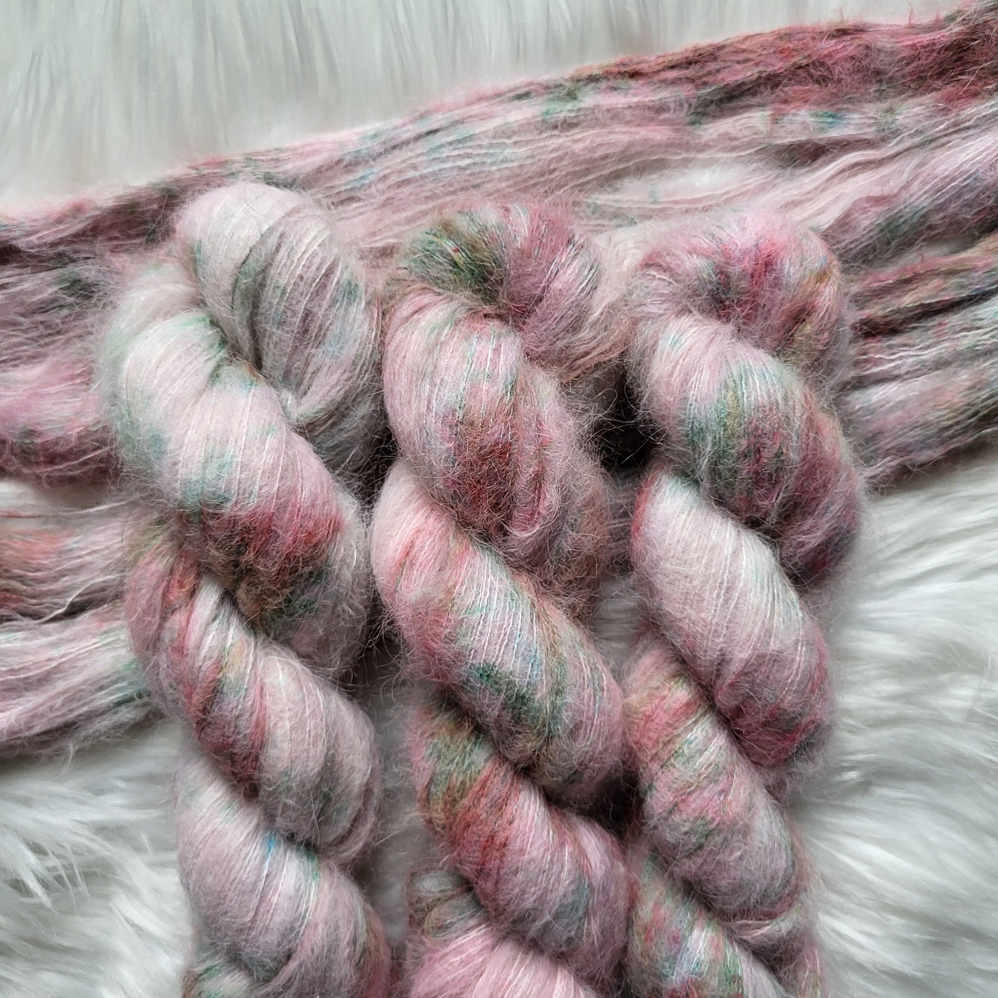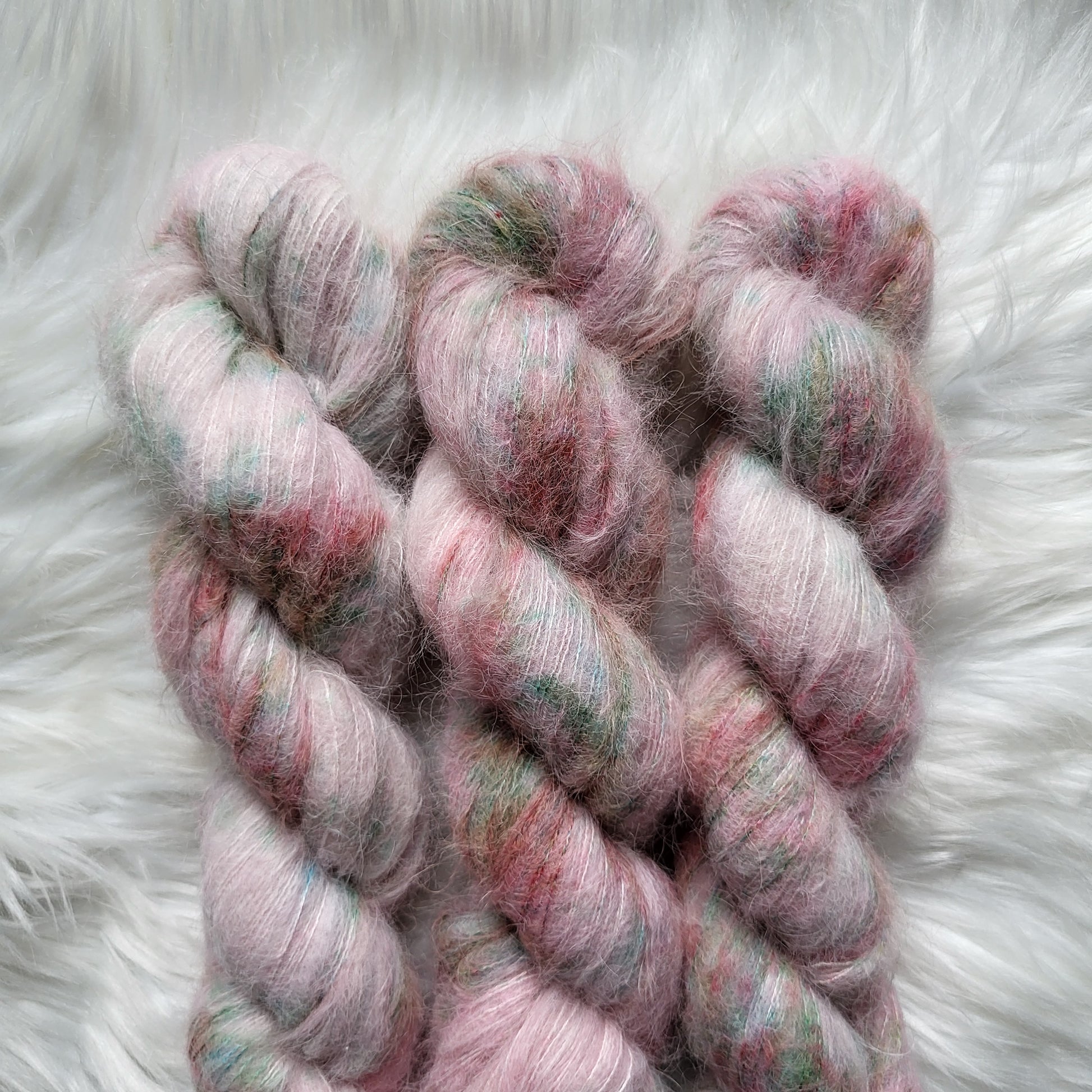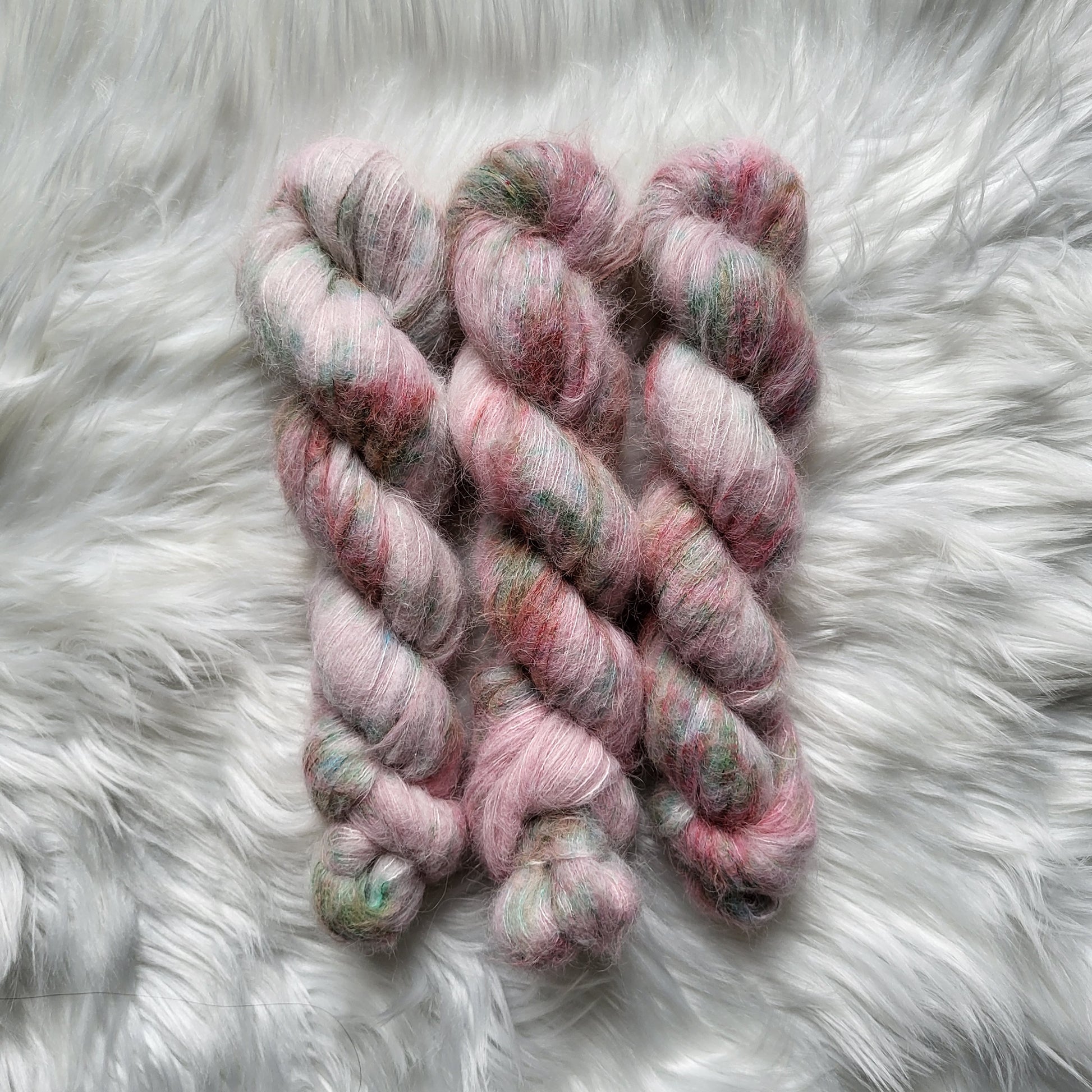 December Holly is an indie-dyed yarn from Chronicles of Cheryl dyed in small batches with a beautiful lace weight yarn. This stunningly soft lace weight yarn would be perfect for holding together in special projects, or crafting a unique lacey accessory. There are only 5 skeins available of this beautiful hand-dyed yarn!