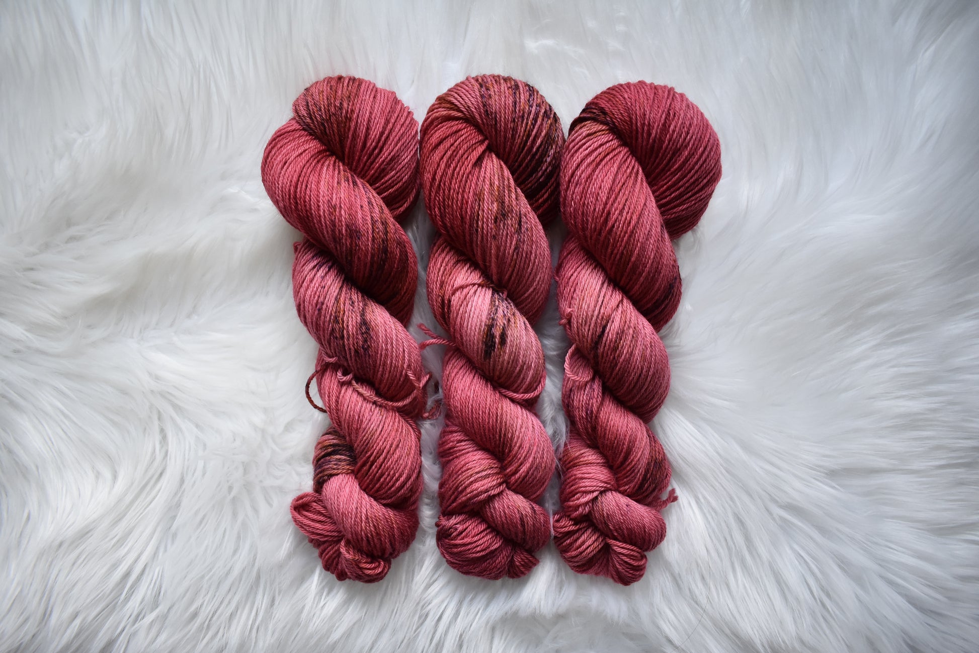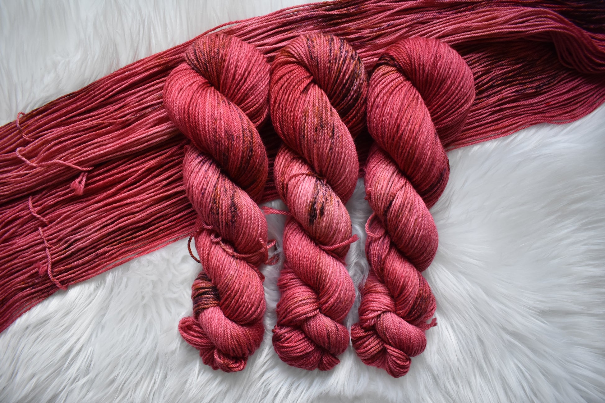 Hibiscus Tea is an indie-dyed yarn from Chronicles of Cheryl dyed in micro batches. These yarns are spun from certified mulesing-free 100% superwash merino wool, and is exactly the yarn everyone’s favorite sweater pattern calls for. The classic 4-ply construction means this durable yarn holds up to washing and wearing.
