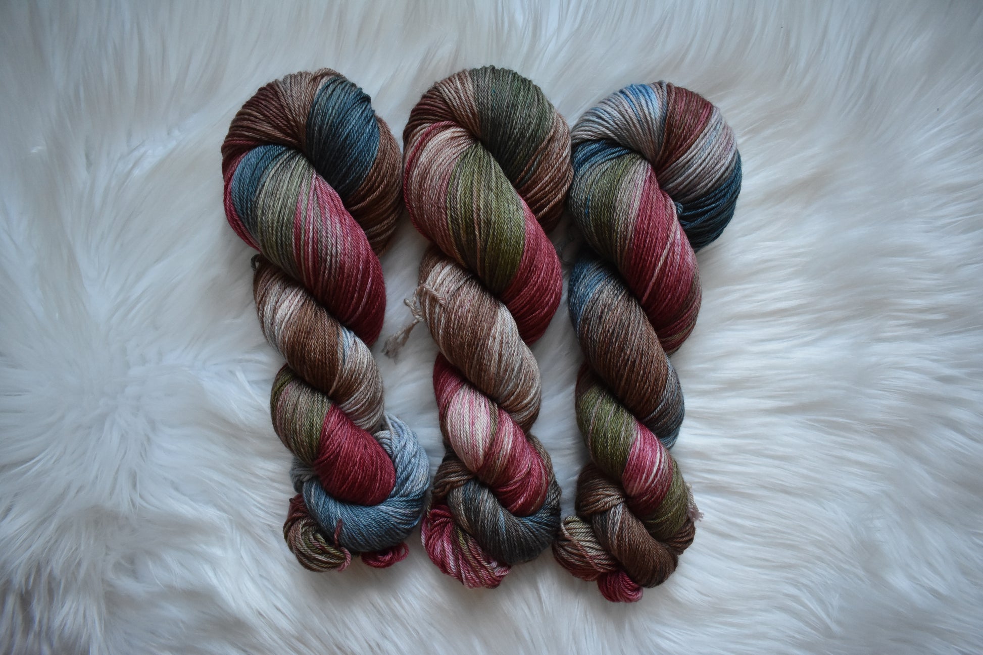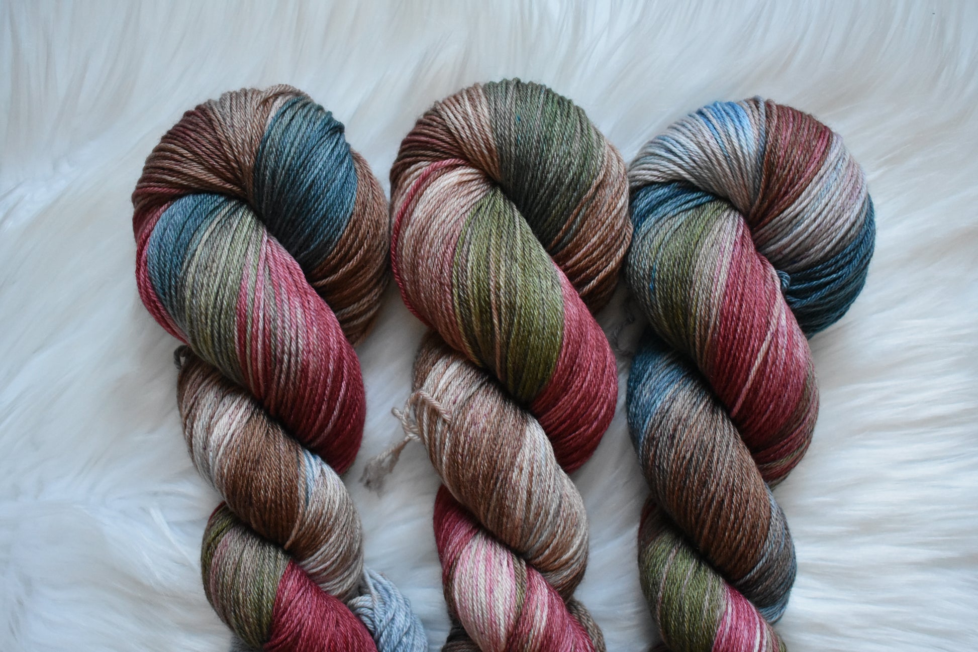 Pictured: Little Women Cashmere Fingering, Marmee Cashmere Fingering, Little Women Sock, Marmee Sock