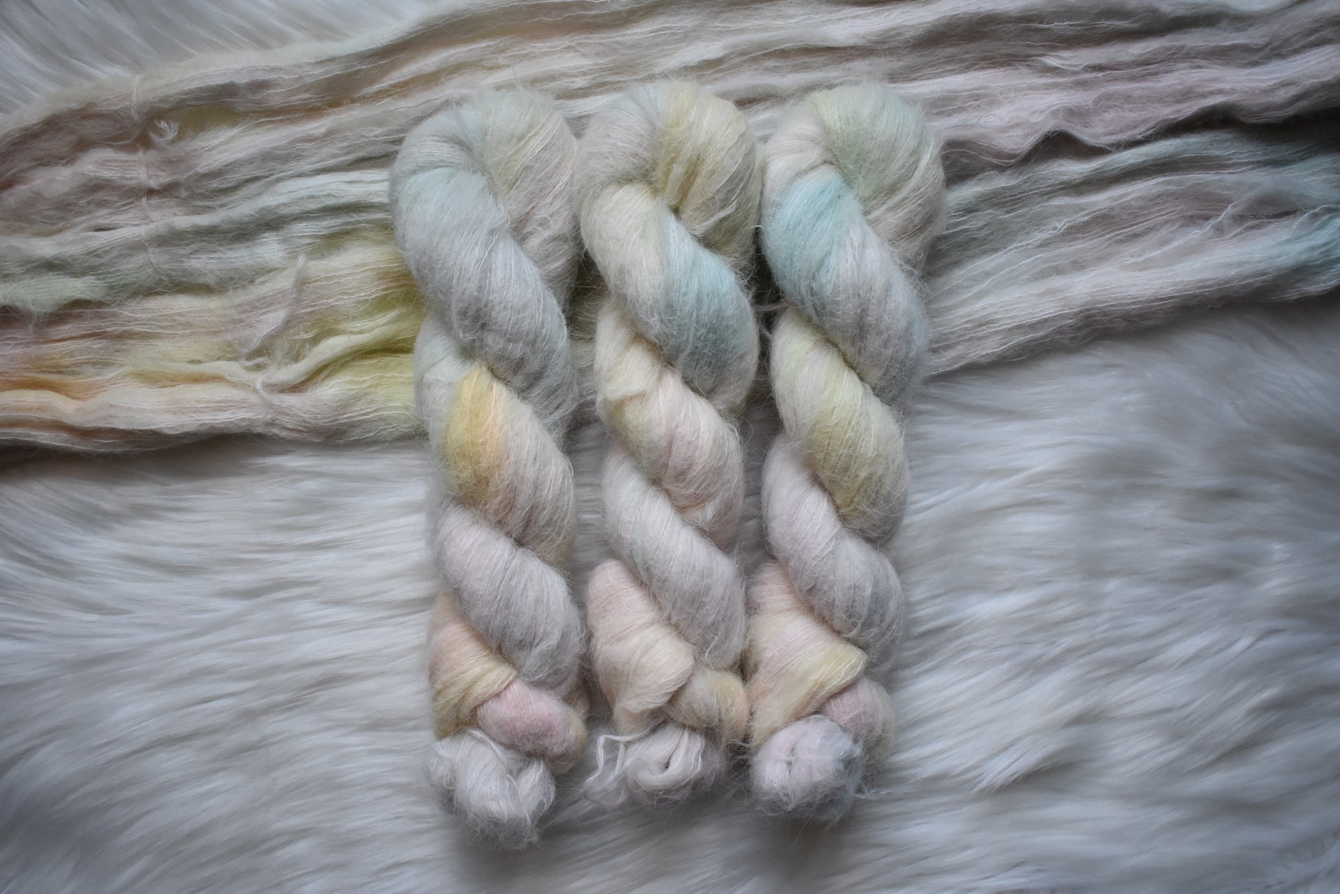 This Pastel Rainbow Colorway is an indie-dyed yarn from Chronicles of Cheryl dyed in small batches with a beautiful lace weight yarn. This stunningly soft lace weight yarn would be perfect for holding together in special projects, or crafting a unique lacey accessory.