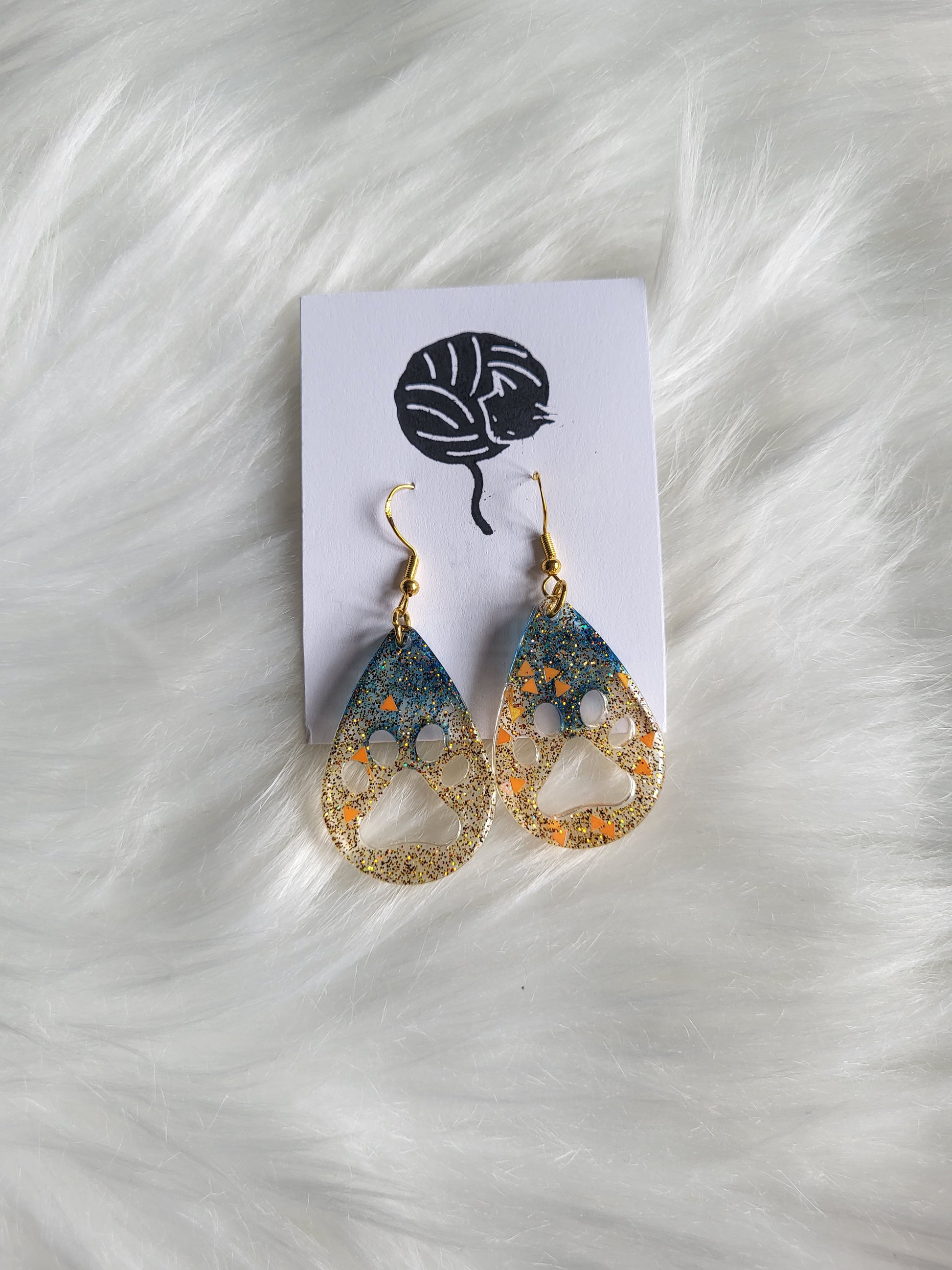 Make a statement with these dazzling paw print earrings, carefully handcrafted by us from high-quality resin. With a touch of glitter, they shimmer and catch the light, adding a touch of whimsy and sparkle to your everyday look. Embrace your love for your furry friends and showcase your unique style with our handmade paw print earrings.