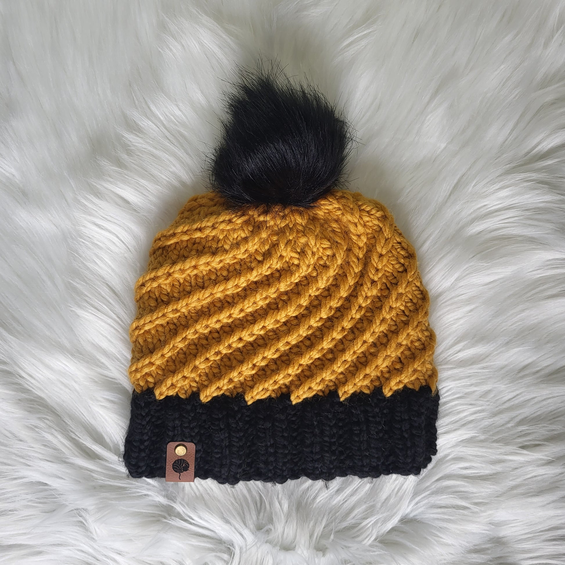 Handmade Knit Wool Beanie | Swirlpool Beanie | Pittsburgh Yellow & Black