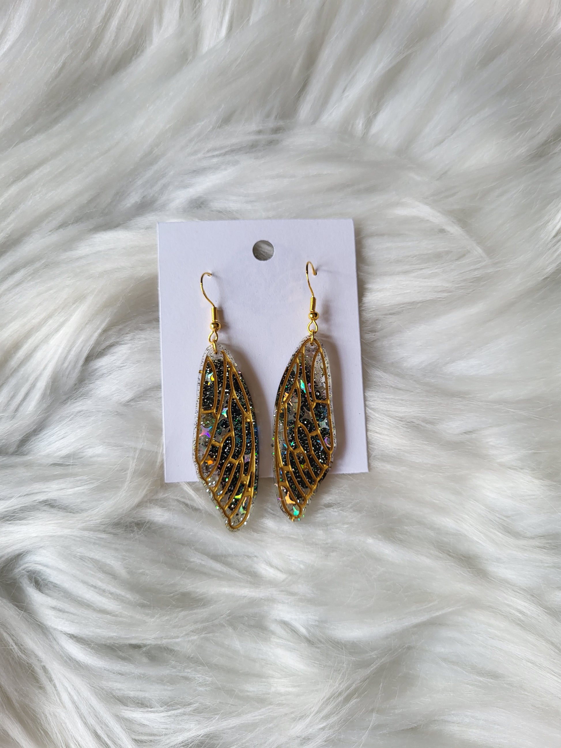 These elegant wing earrings are handmade from resin and are about 2 inches long. Lightweight and comfortable to wear, they have a smooth, shiny finish, making them a stylish and unique addition to any outfit!